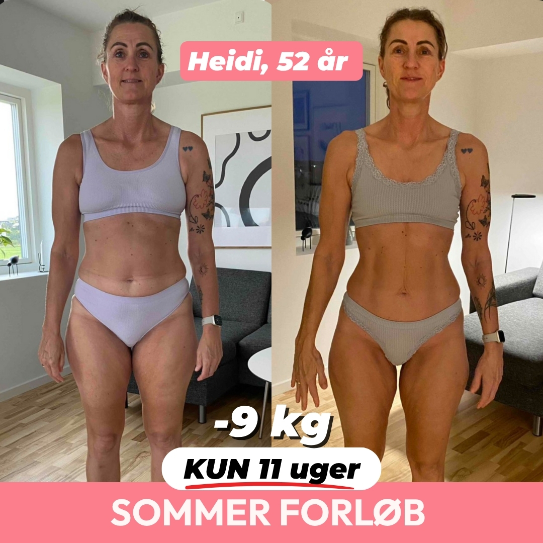 Heidi er 52 år. På bare 16 uger tabte hun 10 kg, fik mere energi og sagde farvel til fedtet på maven – alt imens hun fandt glæden ved en stærkere og sundere krop!